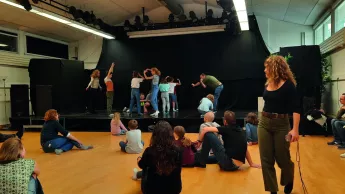 Justine Chambon : Elles sont tournées vers le théâtre et l'improvisation. À travers les différents ateliers, de la maternelle au collège, mon objectif est la découverte de l'univers du théâtre en passant par l'improvisation, le corps et la création de projets collectifs. En fonction des âges, nous parcourons tous les outils à notre disposition pour initier l'enfant à l'art dramatique : développer l'imaginaire grâce à l'improvisation, découvrir l'espace, le rythme, le corps en jeu, l'apprentissage d'un texte... Au début de l'année, le groupe apprend à se connaître et chaque enfant se découvre en tant que comédien. C'est plus tard dans l'année, que le projet collectif démarre autour d'une pièce qui sera jouée en public.