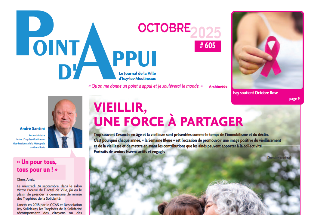Très présent également en cette période, le bleu. Tout particulièrement entre le 6 et le 12 octobre avec la traditionnelle « Semaine Bleue » créée pour mettre en avant le dynamisme de nos seniors. Et pour faire tomber les idées reçues sur la vieillesse, ce sont ces personnes âgées isséennes encore très actives et engagées dans la vie de la commune à travers leurs structures que Point d’Appui a décidé de mettre en avant dans un dossier spécial.
