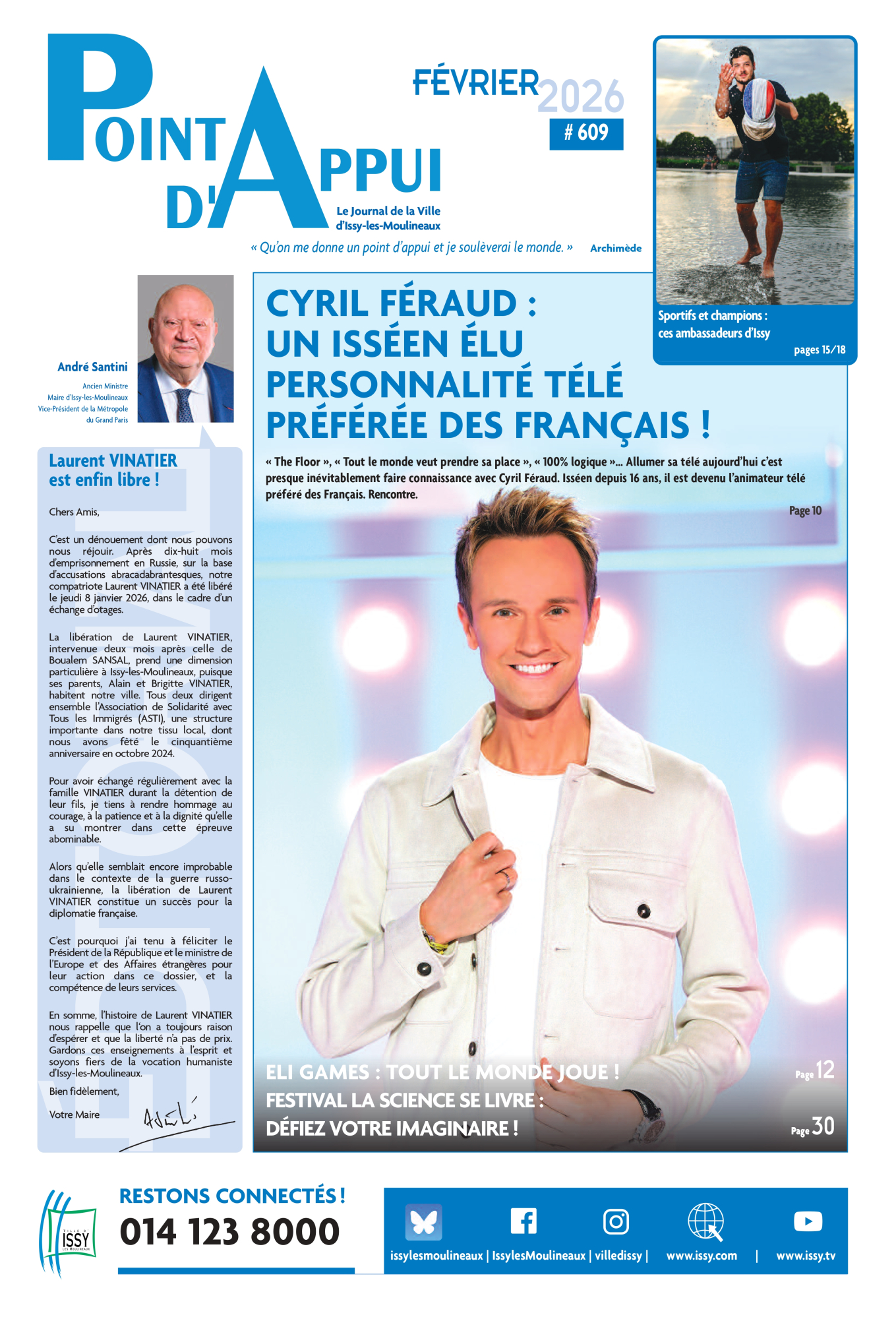 Côté sorties et loisirs, en février les Isséens auront une nouvelle fois un large choix d’activités et d’animations. Les amateurs de sciences en tous genres iront participer aux divers événements organisés tout le mois dans les structures municipales à l’occasion du festival « la Science se Livre ». Les plus joueurs ne manqueront pas d’aller en famille se divertir aux ELI Games tandis que les amateurs d’écriture et de romans iront puiser inspiration, conseils pratiques et expérience auprès de Mariette Navarro qui les attend au Musée de la Carte à Jouer pour participer à l’écriture de son prochain roman. Nous vous conseillons également un détour par l’espace Icare, qui fête cette année ses 60 ans et propose ses premières animations dans le cadre de ces festivités. Et toujours des expositions, des conférences passionnantes, des concerts, sans oublier un petit passage chez nos commerçants locaux pour marquer la Saint Valentin le 14 février. Et bien sûr, le jeudi 5 février, la dernière séance publique du Conseil Municipal avant les prochaines élections.