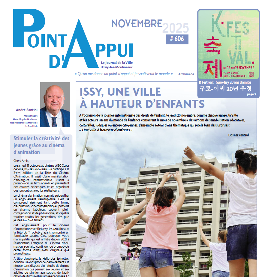Comme chaque année, à l’heure de célébrer la journée internationale des droits de l’enfant, le jeudi 20 novembre, la Ville d’Issy consacre ce mois à mettre en avant sa jeunesse et à se mettre « à hauteur d’enfants ». Au programme donc, une multitude d’animations, d’ateliers, de jeux, de spectacles, de conférences, de rencontres et autres découvertes pour tout âge, qui non seulement feront briller ces jeunes enthousiastes, citoyens, engagés et positifs, mais aussi les structures municipales et associatives isséennes qui oeuvrent pour eux et avec eux au quotidien.