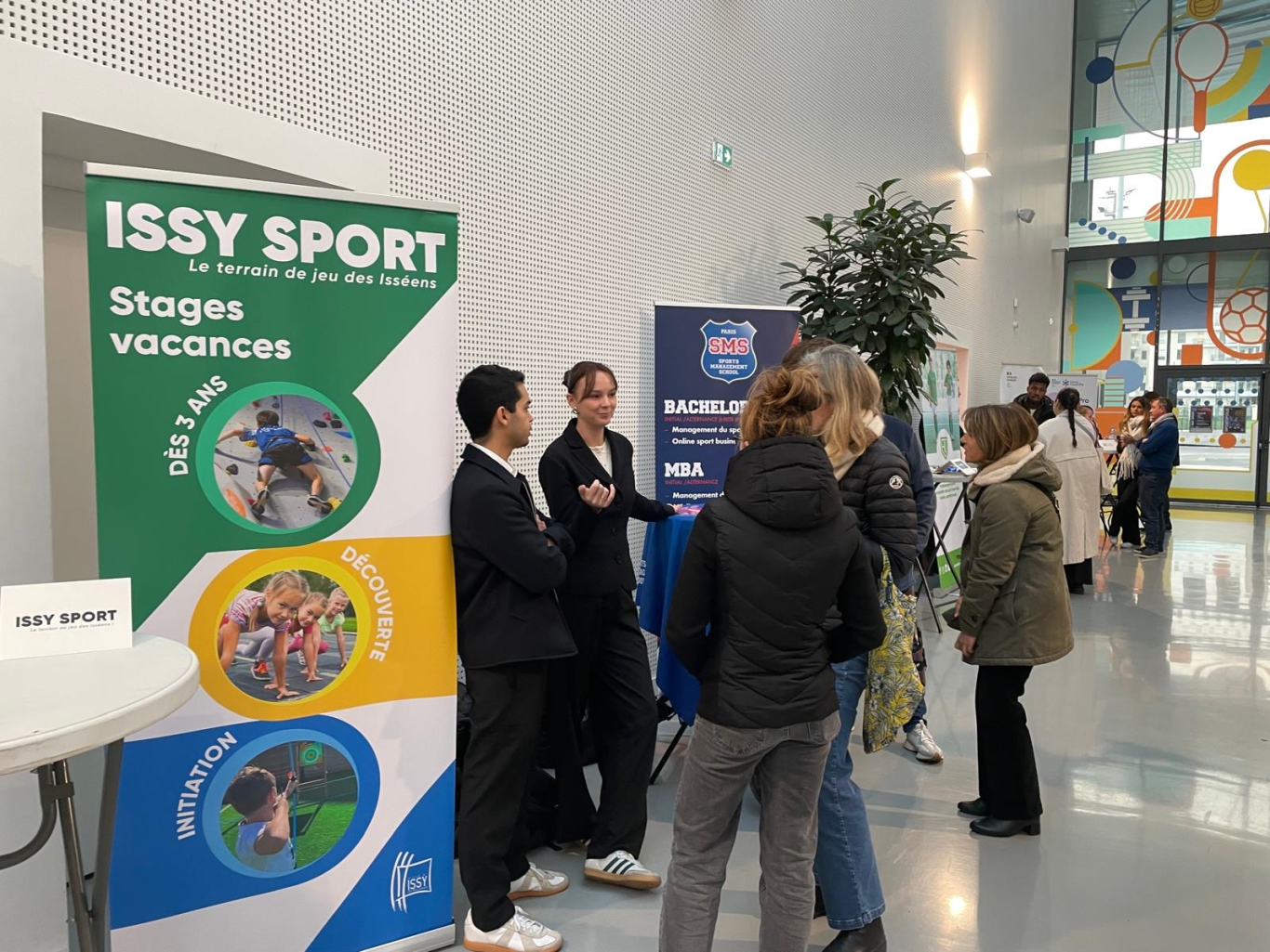 Le forum des métiers, quant à lui, présenté sous forme de stands rencontres avec les entreprises et les acteurs du sport a permis aux entreprises partenaires de lssy Sport (FAYAT, Care for You, Sportipolis, Arkose, Hapik , France Travail, Diomède Académie, Sport Management School, Campus Form, Play Ground, …) d’échanger avec les visiteurs sur la valorisation de la sportivité dans l'économie et les métiers d'avenir dans le sport.