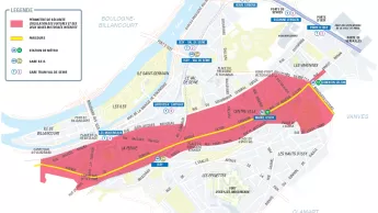 Les bornes de recharge pour les véhicules électriques situées à l’intérieur des périmètres rouges ne seront pas accessibles durant l’activation des périmètres de sécurité. La carte et les informations seront actualisées sur issy.com
