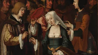 Peint vers 1508, La tireuse de cartes est attribué au célèbre artiste flamand Lucas Jacobsz, dit Lucas de Leyde, du nom de la ville où il est né et où il a vécu jusqu’à sa mort. Deux exemplaires de cette peinture sont connus : le premier, conservé au musée du Louvre, est considéré comme l’original ; le second, exposé au Musée Français de la Carte à Jouer pour une durée de trois ans (qui s’achève), grâce au musée d’art de Nantes auquel il appartient, est attribué à l’École flamande de la fin du 16e siècle ou du début du 17e siècle. Malgré cela, ces deux tableaux apparaissent comme quasiment identiques. Qu’y voit-on ?