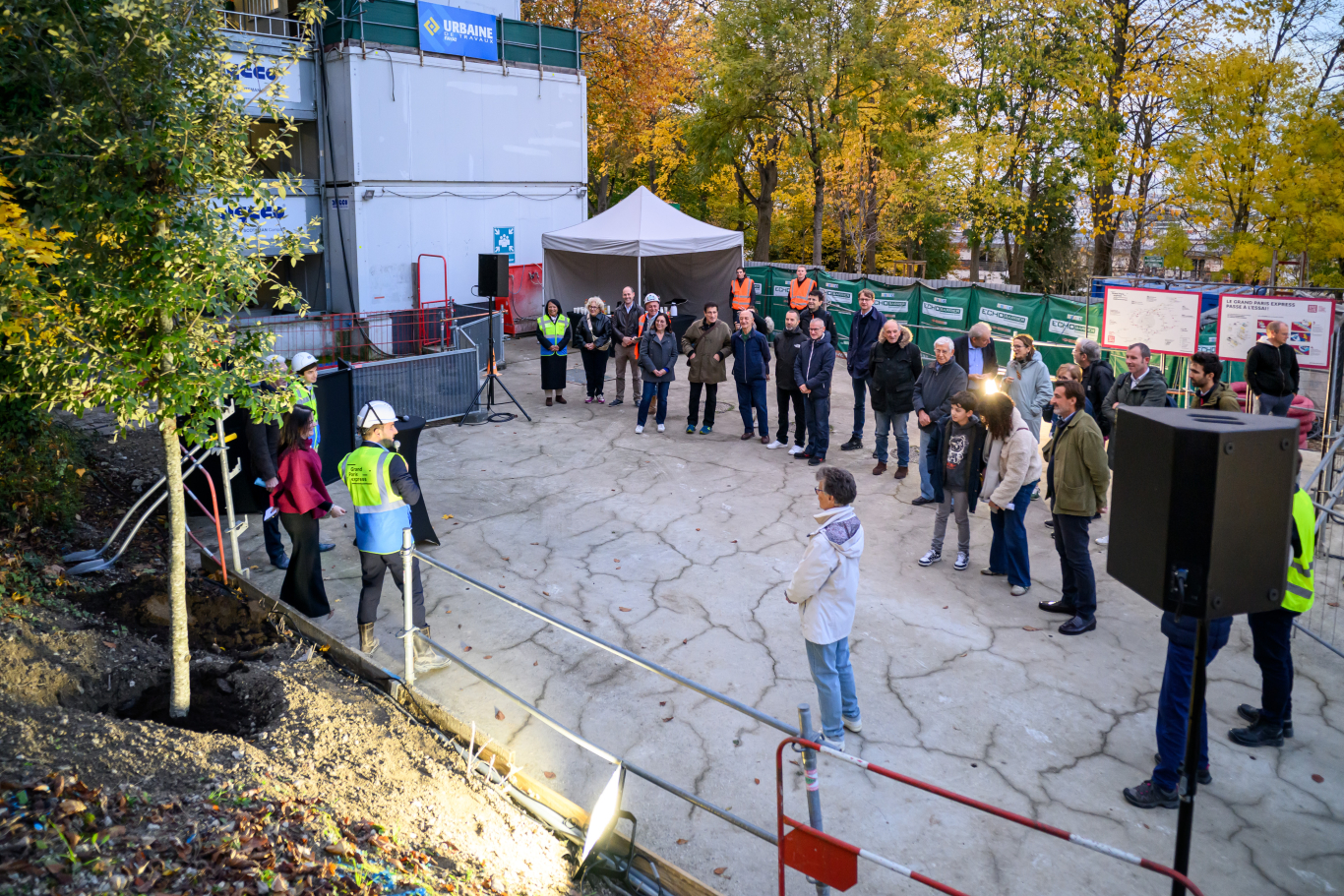 Depuis 2018 en effet, l’implantation de l’ouvrage a nécessité de modifier l’accès au parc et de reconfigurer les aires de jeux alentour. La phase qui s’ouvre, financée par la SGP, vise désormais à restituer des espaces aussi qualitatifs qu’avant chantier : désimperméabilisation, plantations d’arbustes, essences renouvelées. La Ville a participé au choix des aménagements et des palettes végétales. Pour symboliser cette renaissance, un chêne vert a été planté le 5 novembre. Il rejoindra les nombreux arbres remarquables qui composent l’identité du parc Henri-Barbusse.
