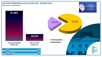 Emmanuel MACRON : 25 802 voix | 81,48% des suffrages exprimés (57,07% des inscrits)